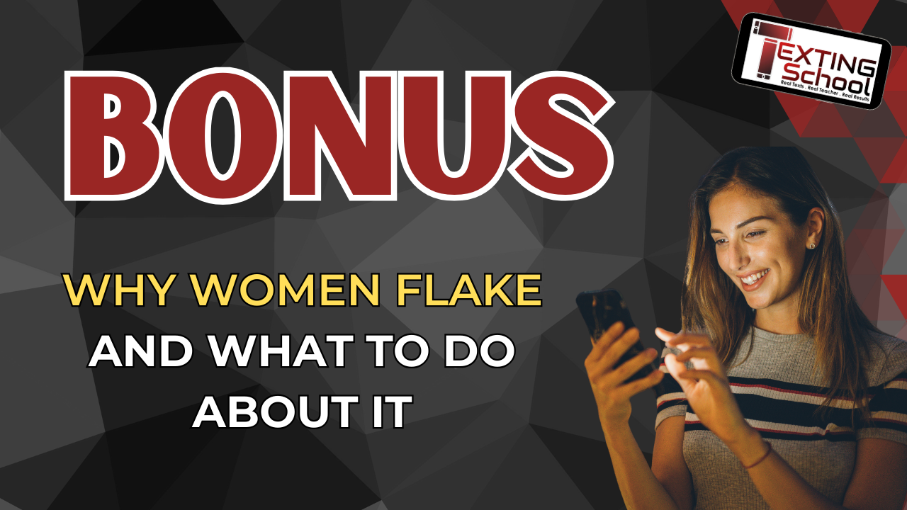 Get the psychology behind WHY women flake and what triggers their desire to 'ghost' or stop responding to a man. Learn how to AVOID women flaking and how to make her eager and excited to see you. Plus you'll see over 10 REAL text message examples showing you what TO DO and what NOT TO DO to help you effortlessly keep women engaged in your conversations.