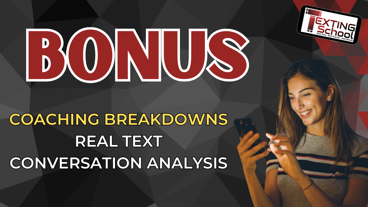 Get your hands on 5 real text conversation breakdowns where I analyze the strengths and weaknesses of everyday men's text conversations. We already know that there are things you WANT to say to women... but sometimes you just don't know how to say them... or maybe what you say simply falls flat. In these breakdowns you will get to learn my feedback on what guys are doing WRONG and RIGHT in their conversations so you can learn from THEIR mistakes.
